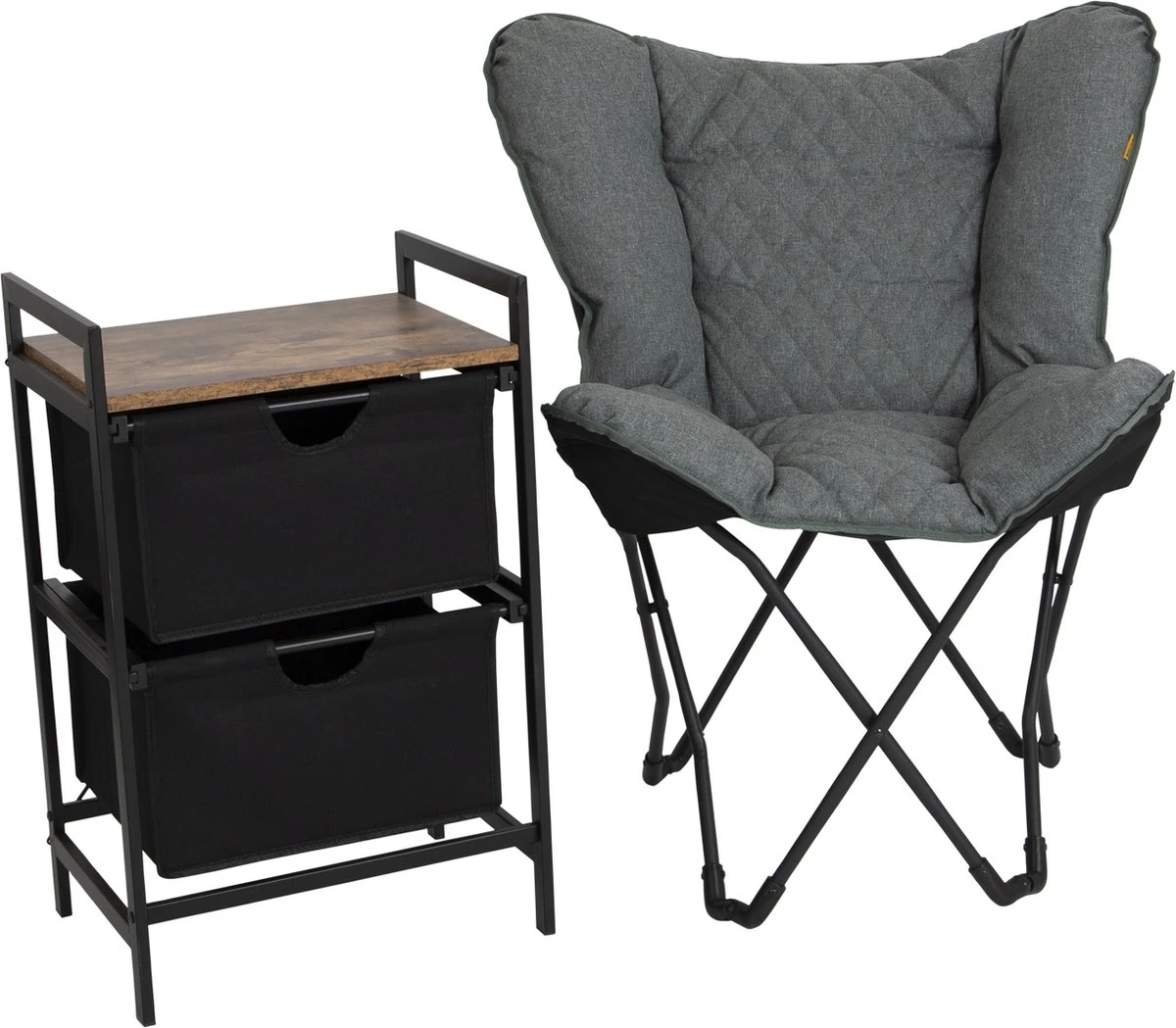 Geniet van je dag op de camping, in je tuin of in je woonkamer op deze Himrod inklapbare vlinderstoel van Bo-Camp! De kampeerstoel heeft een licht gebogen rugleuning en een gevoerde kationische zitting, zodat je lichaam comfortabel ondersteund wordt. Het stevige stalen frame draagt bij aan de stabiliteit van de stoel. De stoel kan verder gemakkelijk worden ingeklapt en in de meegeleverde draagtas worden opgeborgen. Het moderne patroon draagt bij aan het stijlvolle ontwerp. Dit product maakt deel uit van het Industrial assortiment van Bo-Camp.