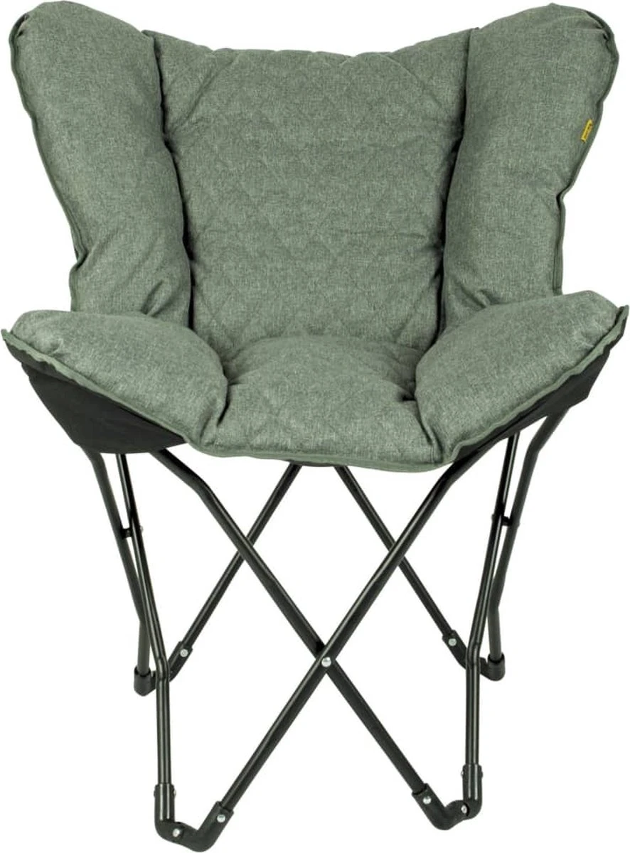 Kleur: groen Materiaal: staal en kationiek weefsel Afmetingen (uitgeklapt): 85 x 66 x 92 cm (B x D x H) Breedte zitting: 68 cm Diepte zitting: 42 cm Hoogte zitting: 45 cm Hoogte rugleuning: 49 cm Gewicht: 3,5 kg Draagvermogen: 100 kg Inklapbaar Gevoerde zitting en rugleuning Inclusief draagtas Bo-Camp Industrial serie