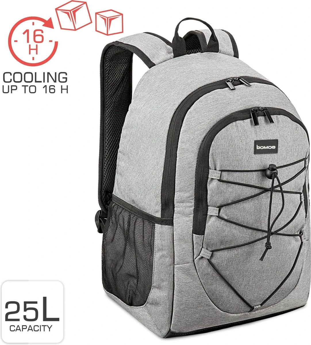 De koelrugzak heeft een volume van ca. 25 liter en is ca. 45x19x33 cm groot. De rugzak is gemaakt van ademend materiaal en heeft gewatteerde schouderbandenzodat de rugzak comfortabel is om te dragen. De rugzak houdt tot 16 uur koel en is lekvrij.