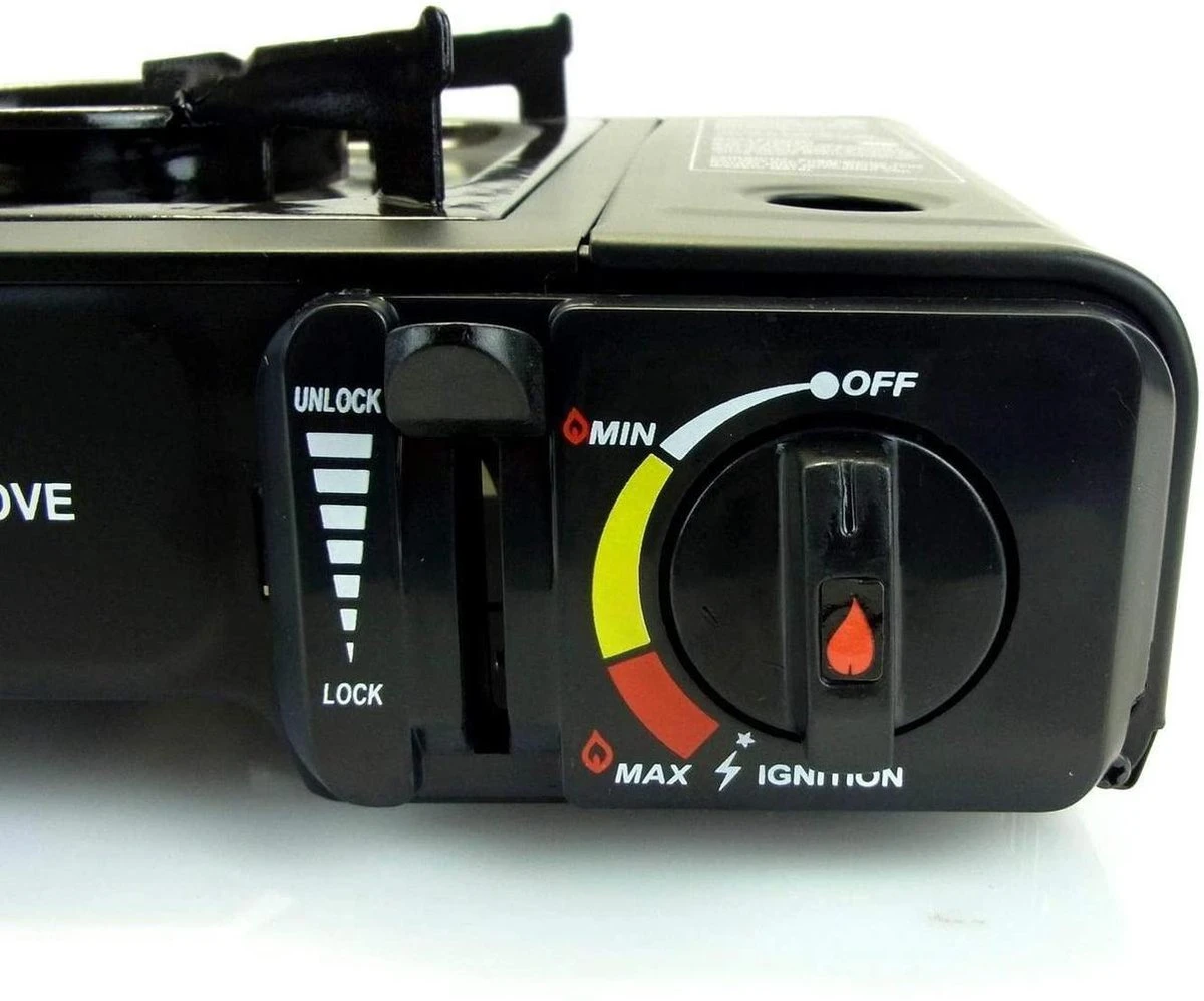 Dit draagbaar gastoestel van Campingwise beschikt over één brander met een vermogen van 2200 Watt. Het gasfornuis wordt geleverd in een plastic koffer waardoor deze eenvoudig mee te nemen is. Bevat een vergrendelingshendel voor de gascartouche, een piëzo-ontsteking en een pandrager met een geëmailleerde laag. Levering is met opbergkoffer