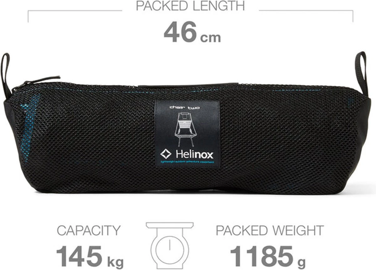 Ontworpen om een ​​optimale balans van lichtgewicht, verpakking, ondersteuning en comfort te leveren, gaat de stoel twee gemakkelijk naar meerdaagse muziekfestivals tot weekend backpacking-uitstapjes naar zonnige dagen in een stadspark. De architectuur zit als de originele stoel één, maar heeft een hogere rug die je schouders en nek beter wiegen. Het hart van het innovatieve ontwerp is het frame. Gemaakt van het licht van Helinox, sterke gepatenteerde geavanceerde DAC-aluminiumlegering, het klapt eenvoudig samen, vouwt het klein en behandelt jaren buiten gebruik. Het verpakt in een 4 x 4 x 14 draagtas, weegt slechts 2,5 lbs terwijl u tot 320 ondersteunt, en zijn ergonomische stoel wordt geventileerd voor koeld comfort op warme dagen.