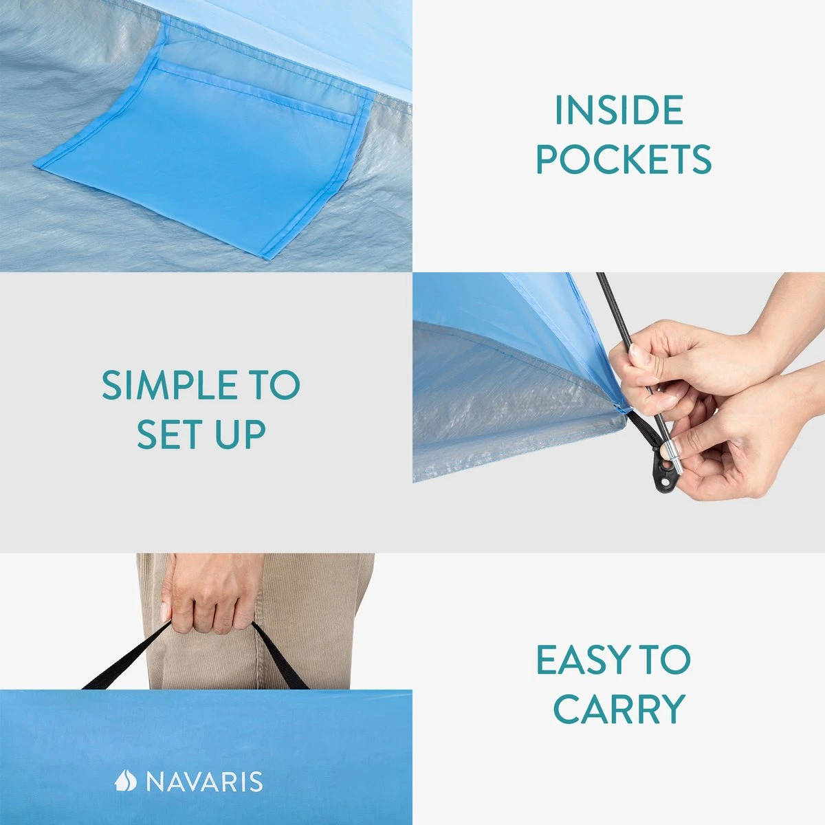 Navaris Windscherm Voor Het Strand – Zon- En Windbescherming Voor Drie Personen – Pop-up Speeltent Met UV- Bescherming – Beach Shelter Met Draagtas