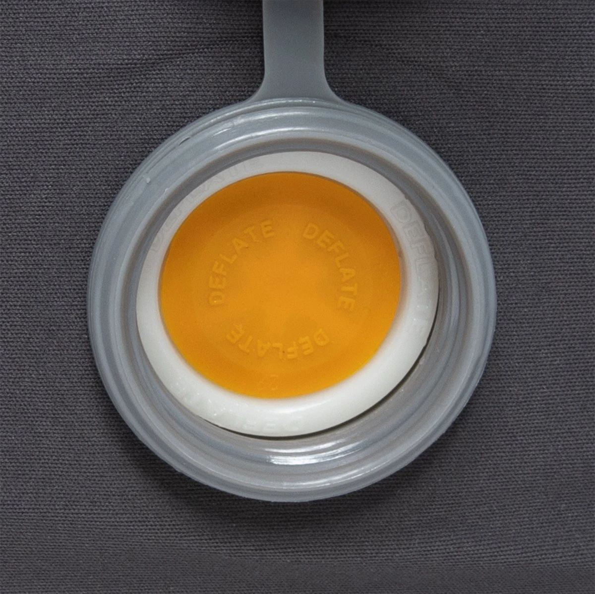 Deze mat heeft één groot ventiel waarmee je de mat zowel opblaast als leeg laat lopen. Het ventiel heeft 3 standen: Open, inflate (om bij te blazen, met het oranje gedeelte aan de binnenkant) of deflate (met het oranje gedeelte aan de buitenkant). Je draait ‘m gemakkelijk met je vinger naar de gewenste stand.