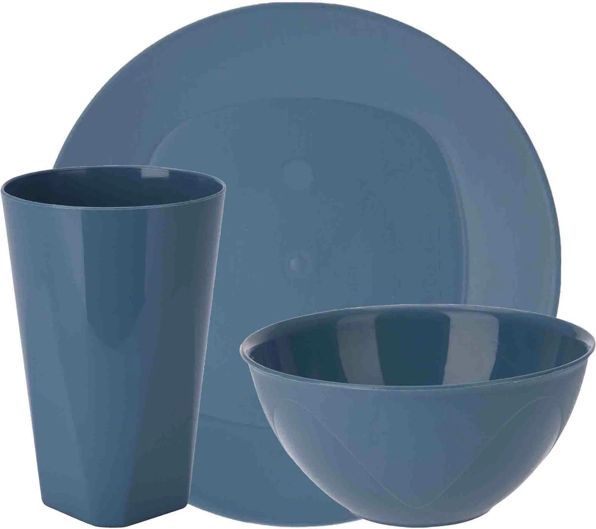 24-delige serviesset bestaand uit 8 bekers, 8 dessertschaaltjes en 8 ontbijtbordjes. Ideaal voor outdoor/camping/picknick/strand. Afmeting beker: ca. D8 x H12 cm. Inhoud: ca. 350 ml. Afmeting schaaltje: ca. D13 x H6,5 cm. Inhoud: ca. 400 ml. Afmeting bord: ca. D20 x H2 cm. Materiaal: polypropyleen. De serviesset is magnetronbestendig en vaatwasserbestendig.
