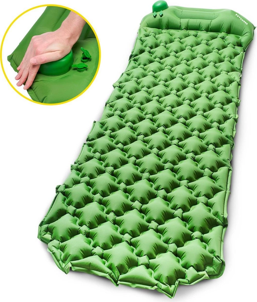 TRVLMORE Slaapmat – Zelfopblazend – 1 Persoons – Ingebouwde Pomp En Kussen – Groen